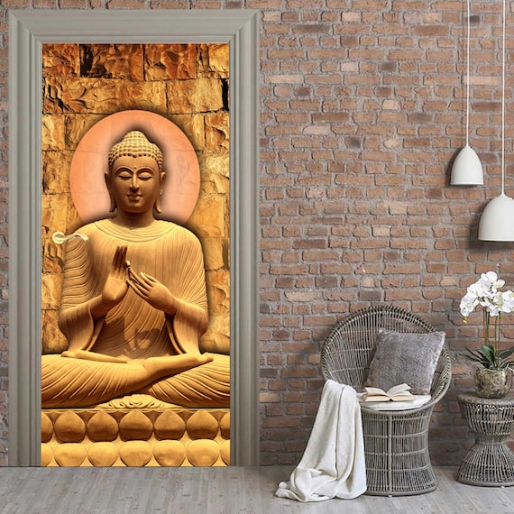 3d Buddha Door Cover Mural Yoga Om Wall Stickers Peel And Etsy