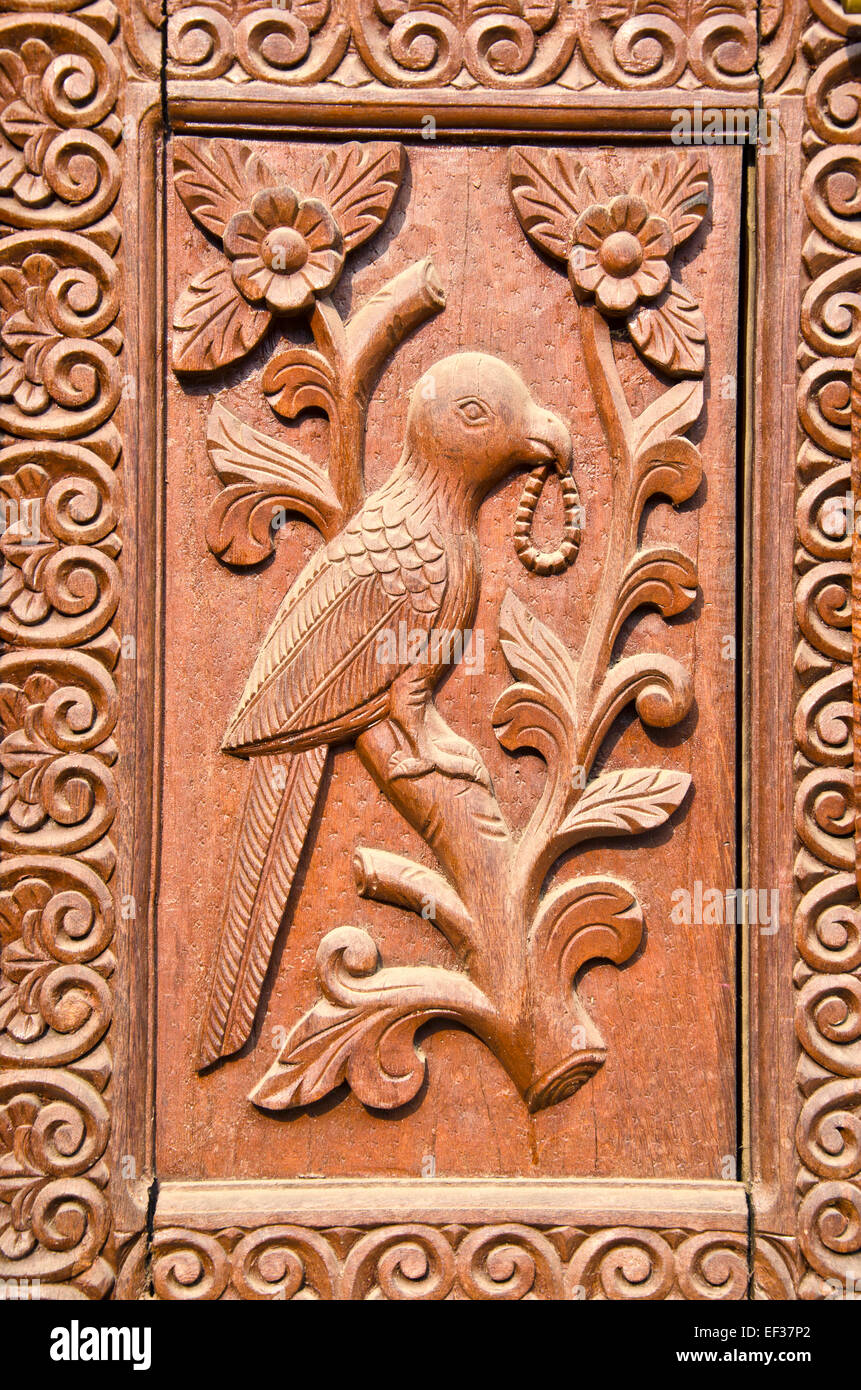 Ornate Carved Wood Door Fragment With Beautiful Bird Relief Stock Photo Alamy