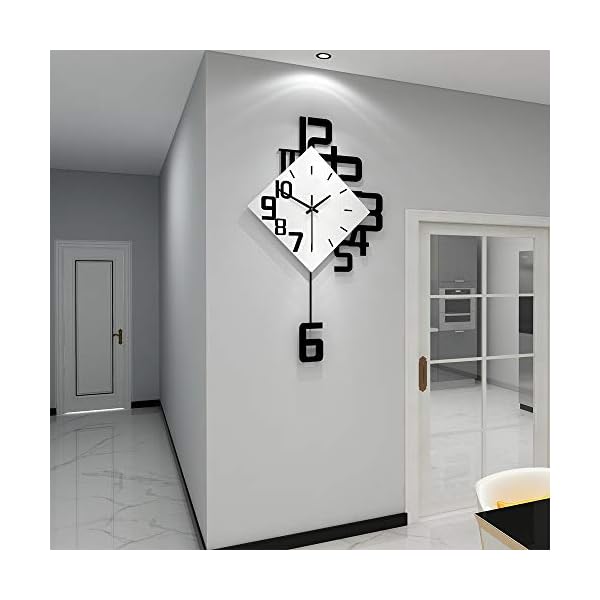 Fleble Big Wall Clock Pendulum Battery Operated Wooden Creative Art Design Pendulum Hanging Clocks Home Decoration For Living Room Bedroom Kitchen Office 31inch