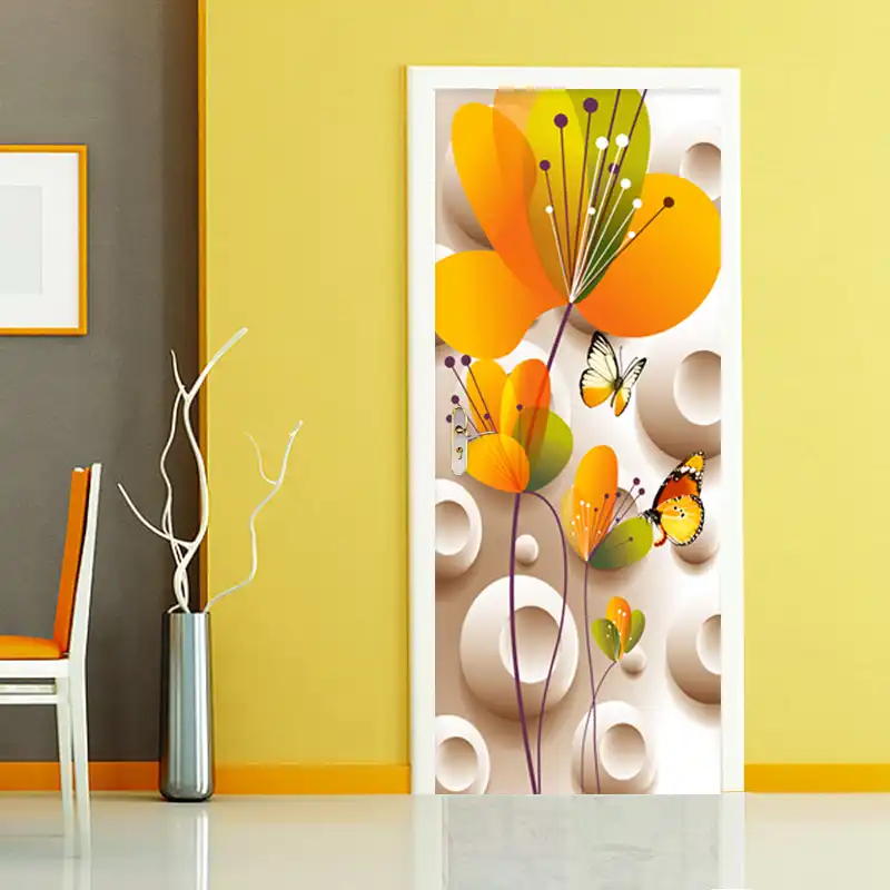3d Stereo Flower Butterfly Wall Door Sticker Modern Creative Art Living Room Kids Bedroom Home Design Door Decals Vinyl 3d Mural Door Stickers Aliexpress