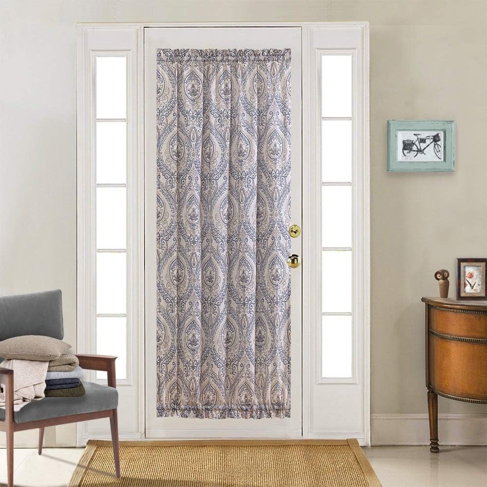 Amazon Com French Door Curtain Linen Print French Door Panel Damask Medallion Design Vintage Drapes For Glass Door Patio Front Door 72 Inch Long One Panel Blue On Beige Flax With Adjustable Tieback