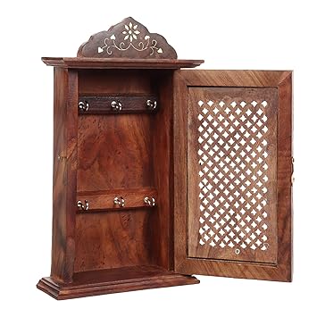Silverboons Wooden Handcrafted Jali Design Door Shape Key Holder Box Key Hooks For Wall Wooden Key Holder Organizer With 6 Key Hooks For Home Decor And Gifting Amazon In Home Kitchen