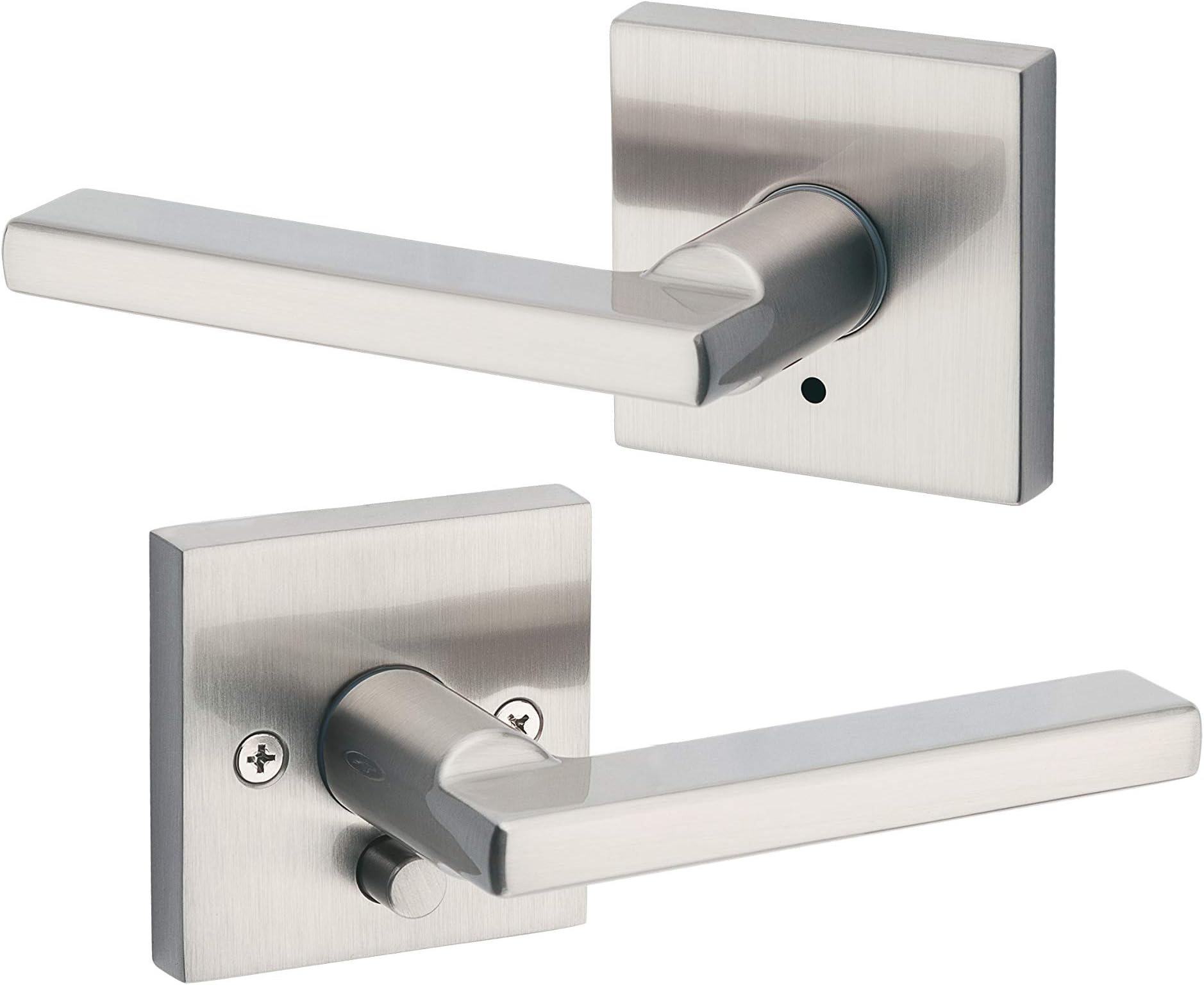 Kwikset 91550 022 Lisbon Door Handle Lever With Modern Contemporary Slim Square Design For Home Bedroom Or Bathroom Privacy In Satin Nickel Amazon Com