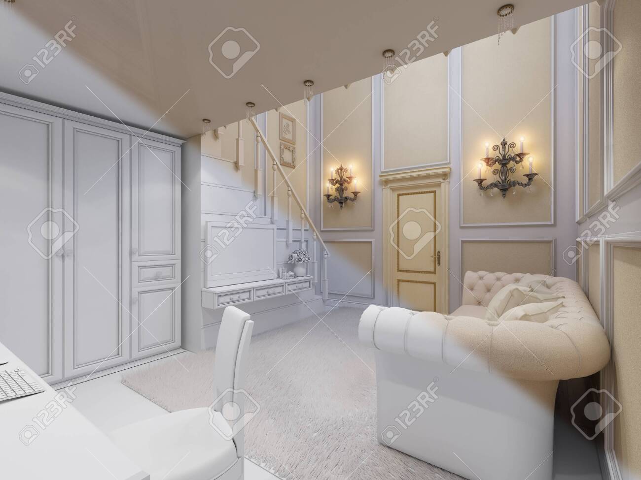 3d Render Of Interior Design Of A Girls Bedroom In A Private Stock Photo Picture And Royalty Free Image Image 140989710