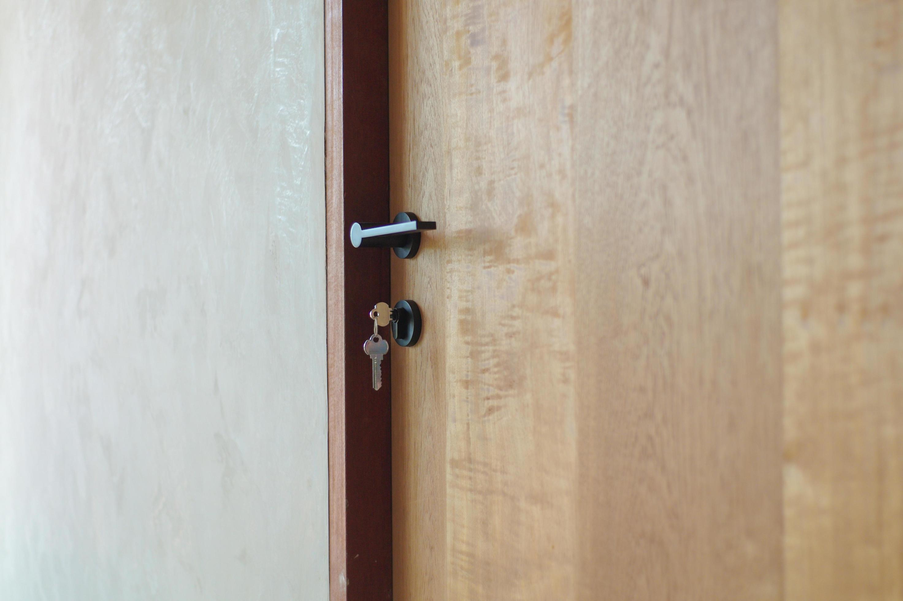 Selective Focus On Modern Style Of Knob On Wooden Door With Keys Hanging On Lock 2233888 Stock Photo