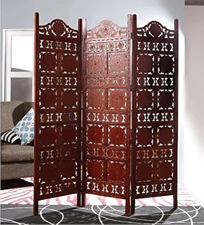 Shilpi Classic Look Wooden Room Partition 3 Panel Wooden Net Design Zigzag Position Divider Amazon In Home Kitchen