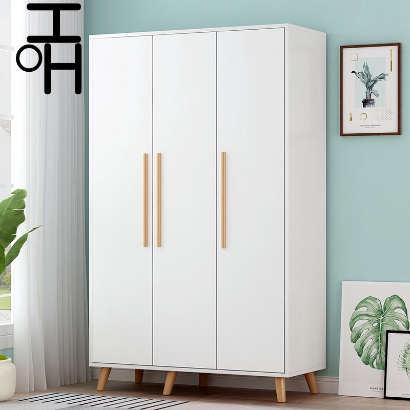 Nordic Wardrobe Solid Wood Walnut White 3 Door Wardrobe With Lock Door And 6shelves White Wardrobe Almari Baju Storage Rack Almari Shopee Singapore