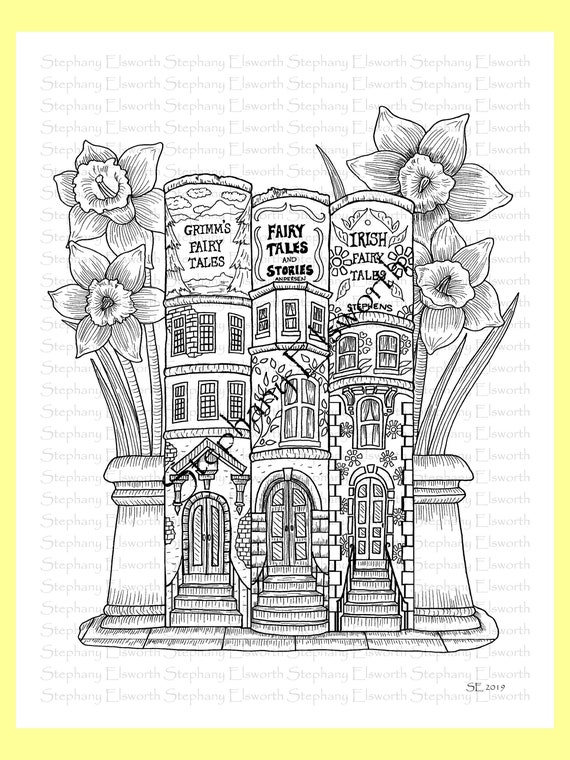 Book Houses Printable Adult Coloring Page From Favoreads Etsy