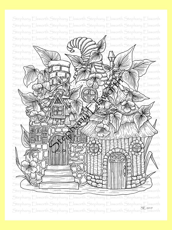 Faerie Houses Ii Set 2 Pdf Printable Coloring Pages 6 10 Etsy