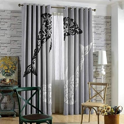 Buy Grogon Grommet Blackout Curtains Dolphin Monochrome Subaquatic Design With Floral Details On Greyscale Background Bedroom Patio Sliding Door Pale Grey Black White W72 Xl72 Online At Low Prices In India